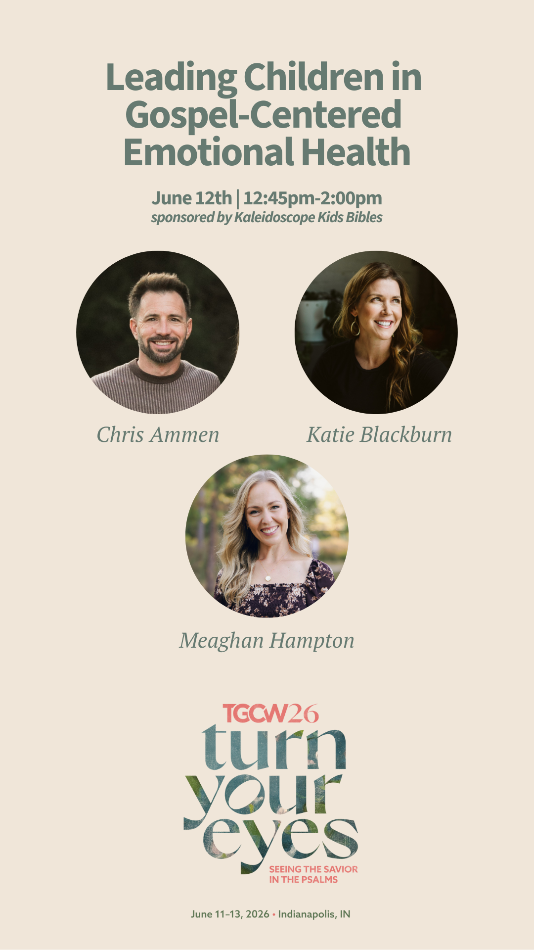 You'll hear from family and child counselor, Meaghan Hampton, MACC, LPC and the Founder of @soulcareforfamilies along with Chris Ammen and Katie Blackburn of Kaleidoscope Kids Bibles. This practical session will help parents build connections with their children and cultivate gospel-centered and psychologically-informed families. Parents will leave the session more knowledgeable about what gospel-centered emotional health looks like, children's unique emotional/social needs, and their role in leading children in gospel-centered emotional health.